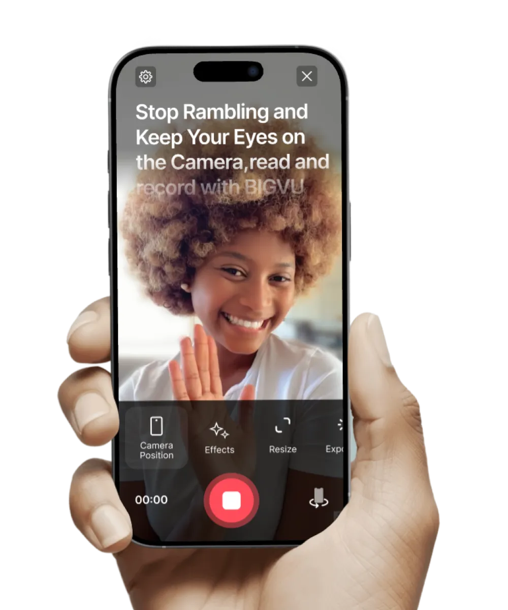 Stay confident on camera with BIGVU's Teleprompter. A script scrolls at your pace so you sound natural and stay on point-no memorizing.